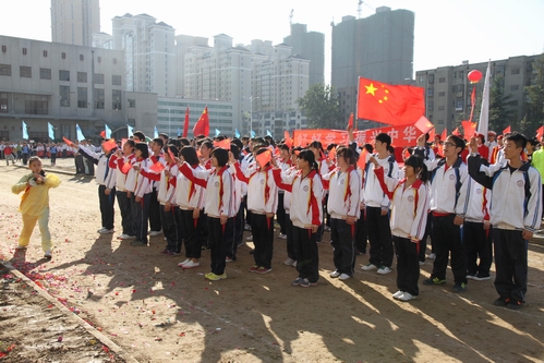 28日早晨,全校师生兴致勃发,运动会开幕式在大家的欢呼声中拉开了序幕——国旗队、校旗队、彩旗队、裁判员队伍、各个班级的队伍依次通过主席台。彩旗飘飘,鼓点阵阵,师生个个精神抖擞、意气风发,各班级在班主任的带领下,服装统一,步伐整齐,口号响亮,表演各具特色,且富有创意,掌声、欢呼声此起彼伏,有的班级学生手拿国旗,整齐的挥舞着;有的班级自己设计班级标志,展示班级凝聚力;有的班级表演舞蹈、体操等节目,丰富多彩;有的班级学生亲手制作班级文化衫,个性鲜明……各个班级风采各异,创意十足,整个运动场成了一片欢乐的海洋,大家都为眼前一个个集体创造的奇迹震撼!