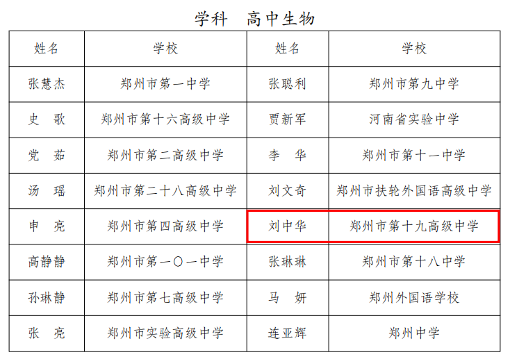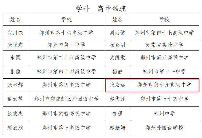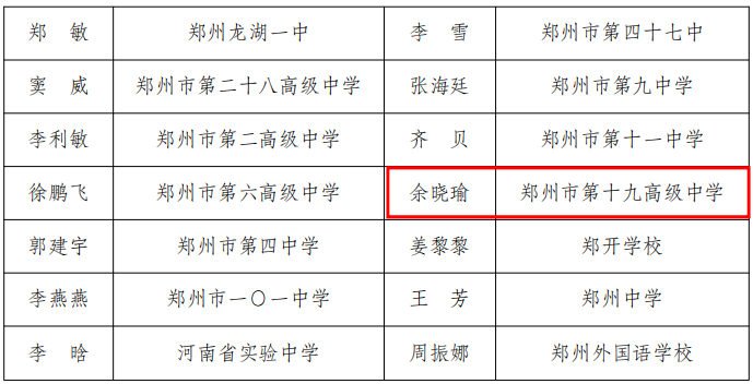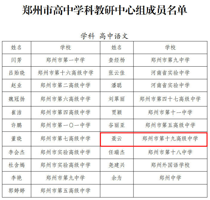 近日,郑州市教育局公布了新一届郑州市基础教育学科教研中心组成员名单,我校聂云、余晓瑜、付云凤等12名教师凭借扎实的专业功底、卓越的教学实绩和深厚的教研能力成功入选,涵盖语文、数学、英语、物理、化学、生物、政治、历史、地理、体育、美术11个学科,充分彰显了学校教师队伍的综合实力与学科优势。