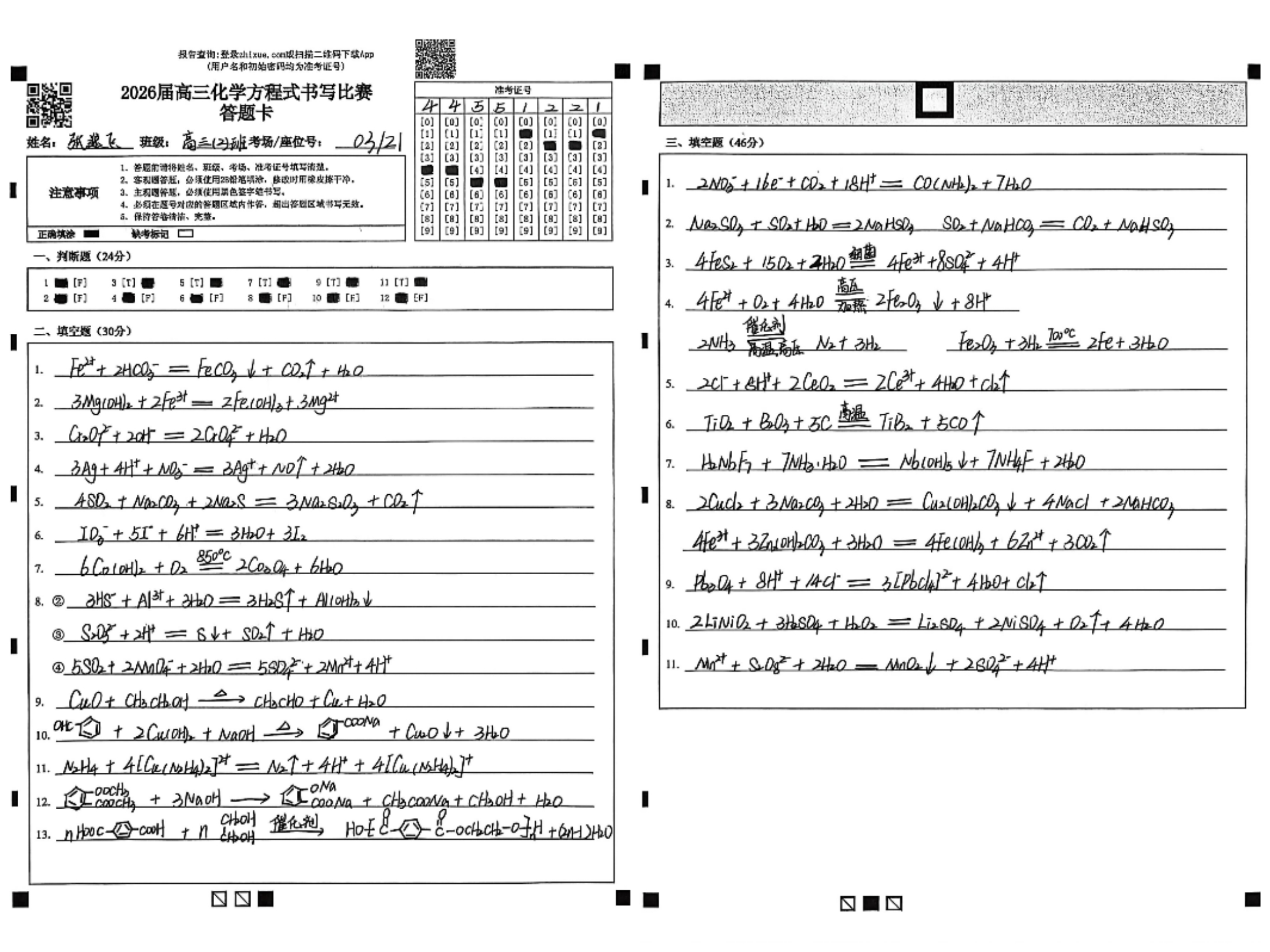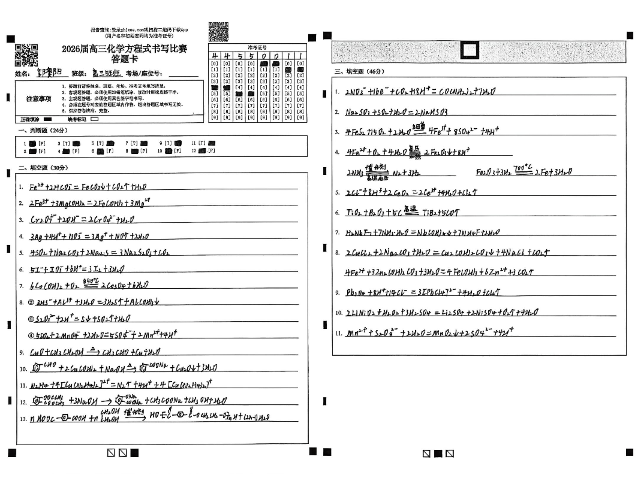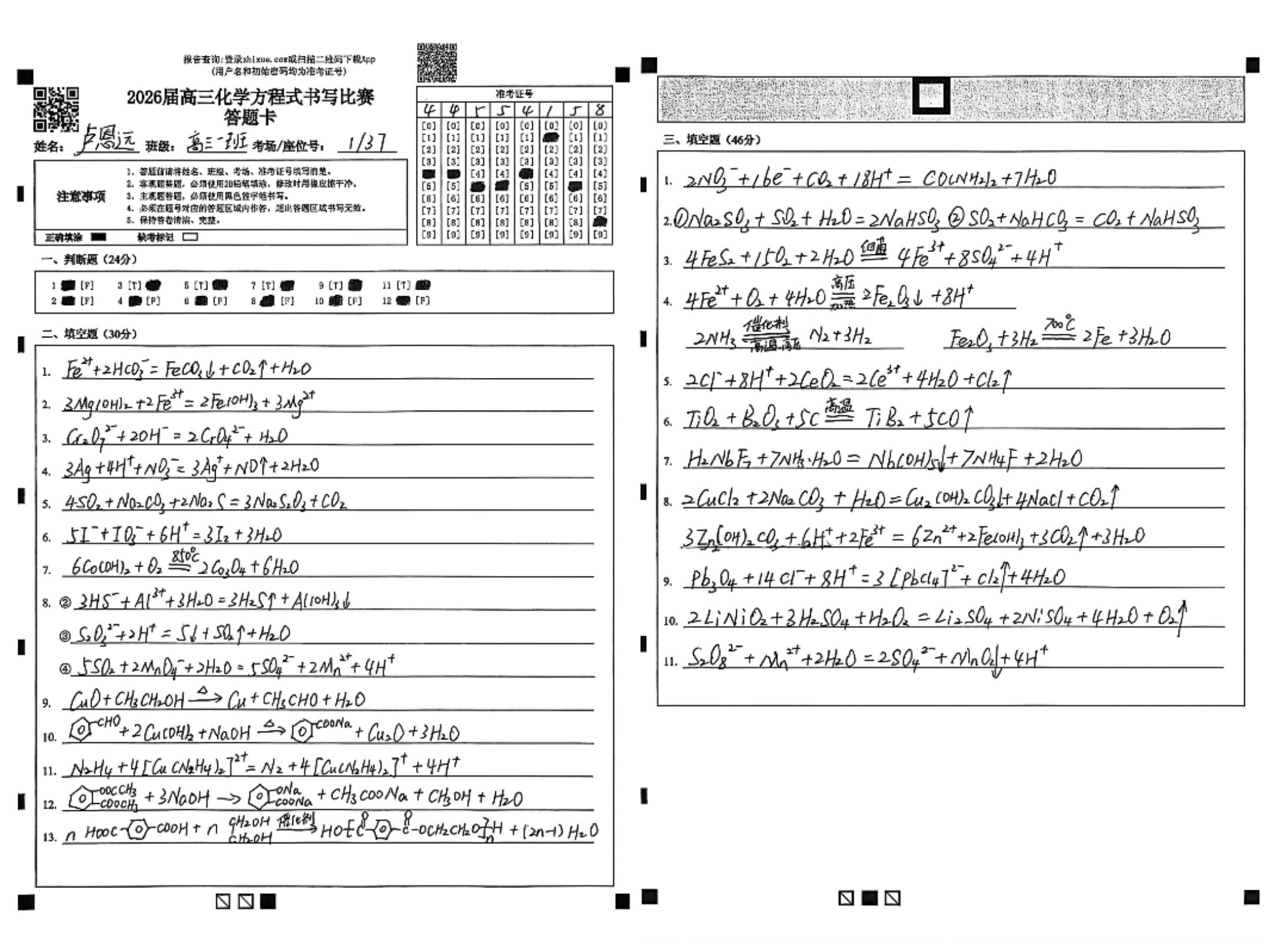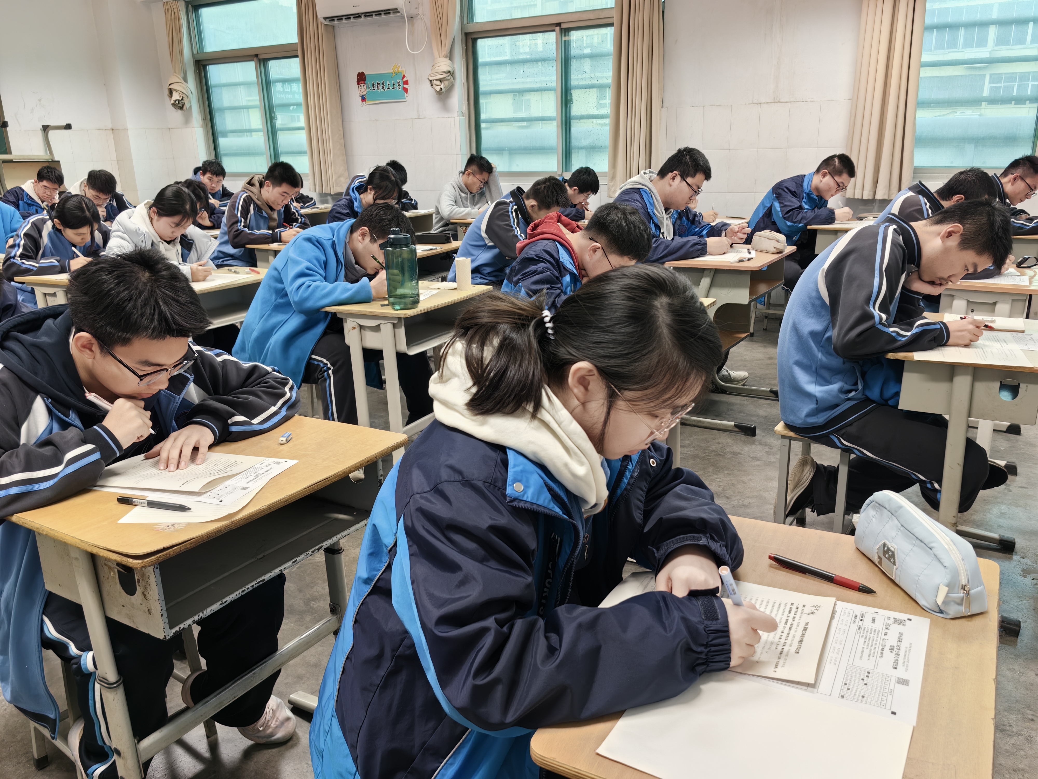 比赛现场,气氛紧张有序,学生们凝神书写,笔尖流动间,各类化学反应跃然纸上。从基础有机反应到复杂无机转化,从氧化还原配平到离子方程式书写,一个个方程式在限时中连贯而出,学生们展现出扎实的学科功底与清晰的思维脉络。这场笔尖上的“化学反应”,既检验了知识掌握的熟练度,也展现了他们在一轮复习中积累的底气与信心。