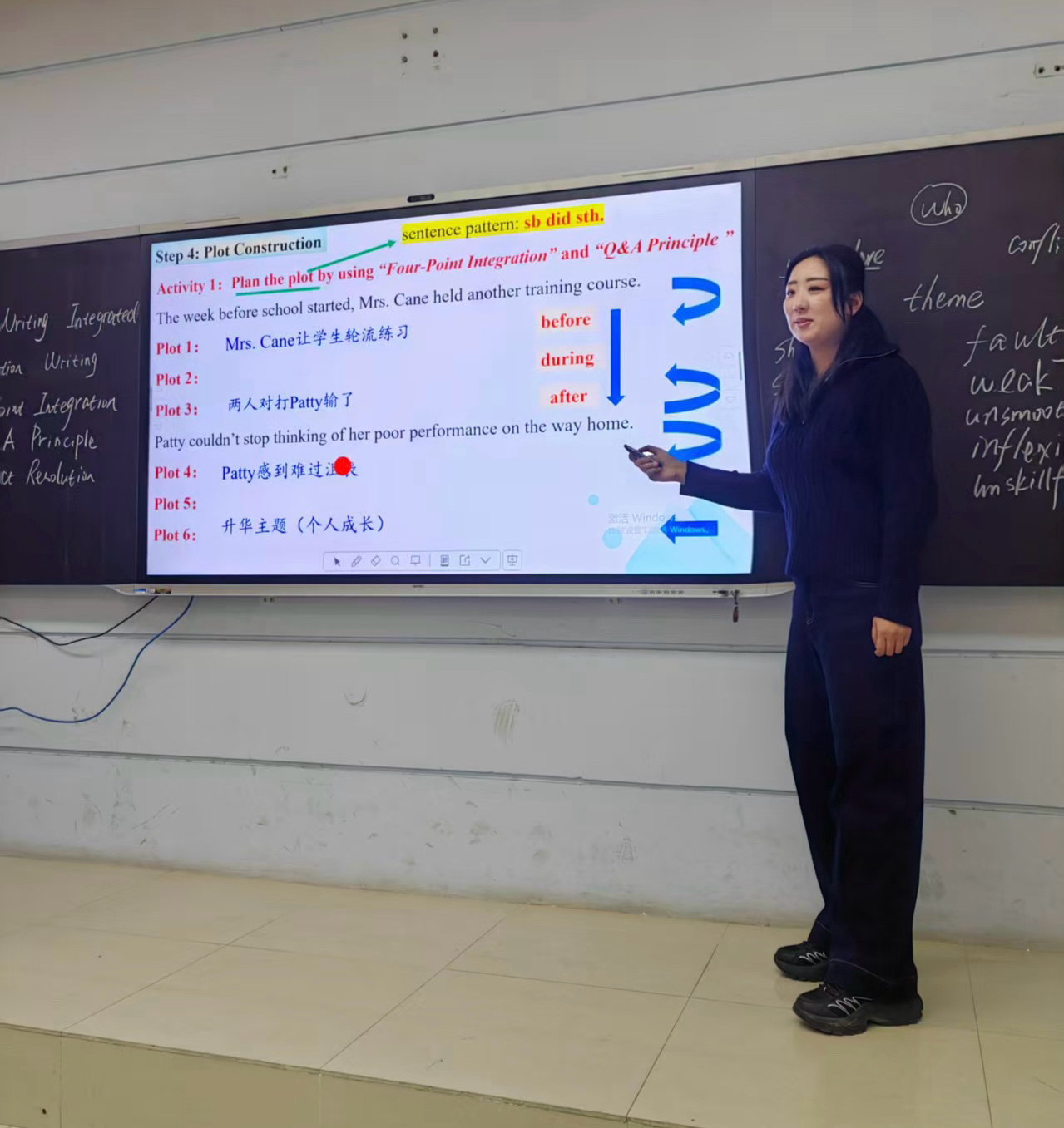 郑州第十九高级中学的李文瑾老师,呈现了一堂精彩纷呈的读写融合展示课 《基于必修一 Unit 3 “运动与健康” 话题的读写融合读后续写》。课堂伊始,李老师便以群文阅读为抓手,引导学生积累运动主题的优质表达,为后续写作实践筑牢素材根基。进入阅读环节,她创新性地以给定的两句话为切入点,带领学生逆向推导原文脉络,同时通过圈画关键信息,系统梳理并总结出 “人物(who)、时间/地点(when/where)、冲突(conflict)、主题(theme)” 四大核心要素。紧接着的情节构建环节,她以 “sb did sth.” 基础句型为核心支架,融合 “四点合围”、“QA 法则”、“矛盾解决法” 三大策略,帮助学生搭建起清晰且富有逻辑的写作框架。到了写作表达环节,李老师进一步分层指导学生优化语言:巧用形容词、副词与介词短语实现句子的丰富拓展;依托动作链与原文线索,精准刻画彰显 “专业技能的动作”;灵活运用语言描写、情绪表达、强调等多元句型提升文采;同时着重强调情节间的衔接技巧,让文章结构更趋严谨。整堂课设计环环相扣,李老师尤为注重培养学生的逻辑思维与语言表达能力,通过搭建阶梯式的写作支架,助力学生实现了从语言输入到高质量输出的自然过渡。
