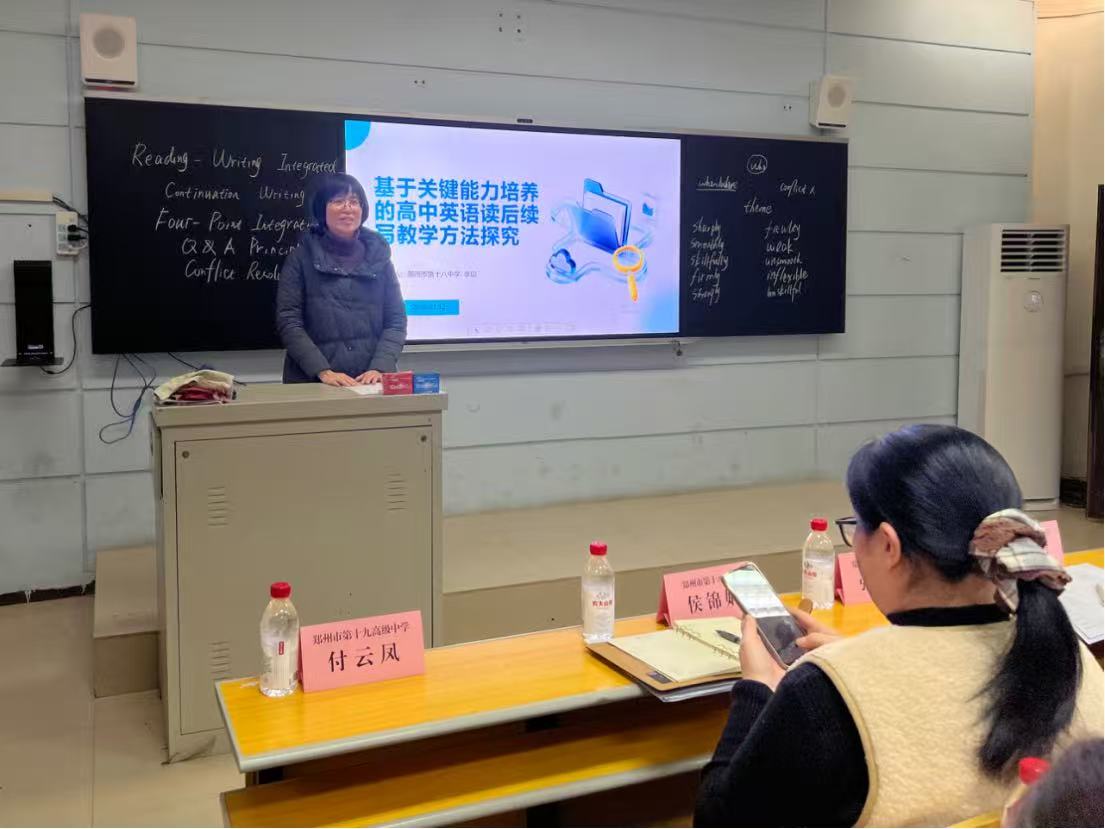 岁末冬深,寒意渐浓,却丝毫挡不住教育工作者深耕教研的热忱。1月12日下午,郑州市高中英语第七教研共同体齐聚郑州第十九高级中学,开展了以“中学英语关键能力培养路径探究”为核心的主题教研活动。活动以精彩课例展示、深度经验分享、多维互动评议为三大核心环节,全方位探讨了新高考背景下高中英语读后续写教学的有效实施策略,为高三英语复习教学质量的提升注入了全新活力与智慧。