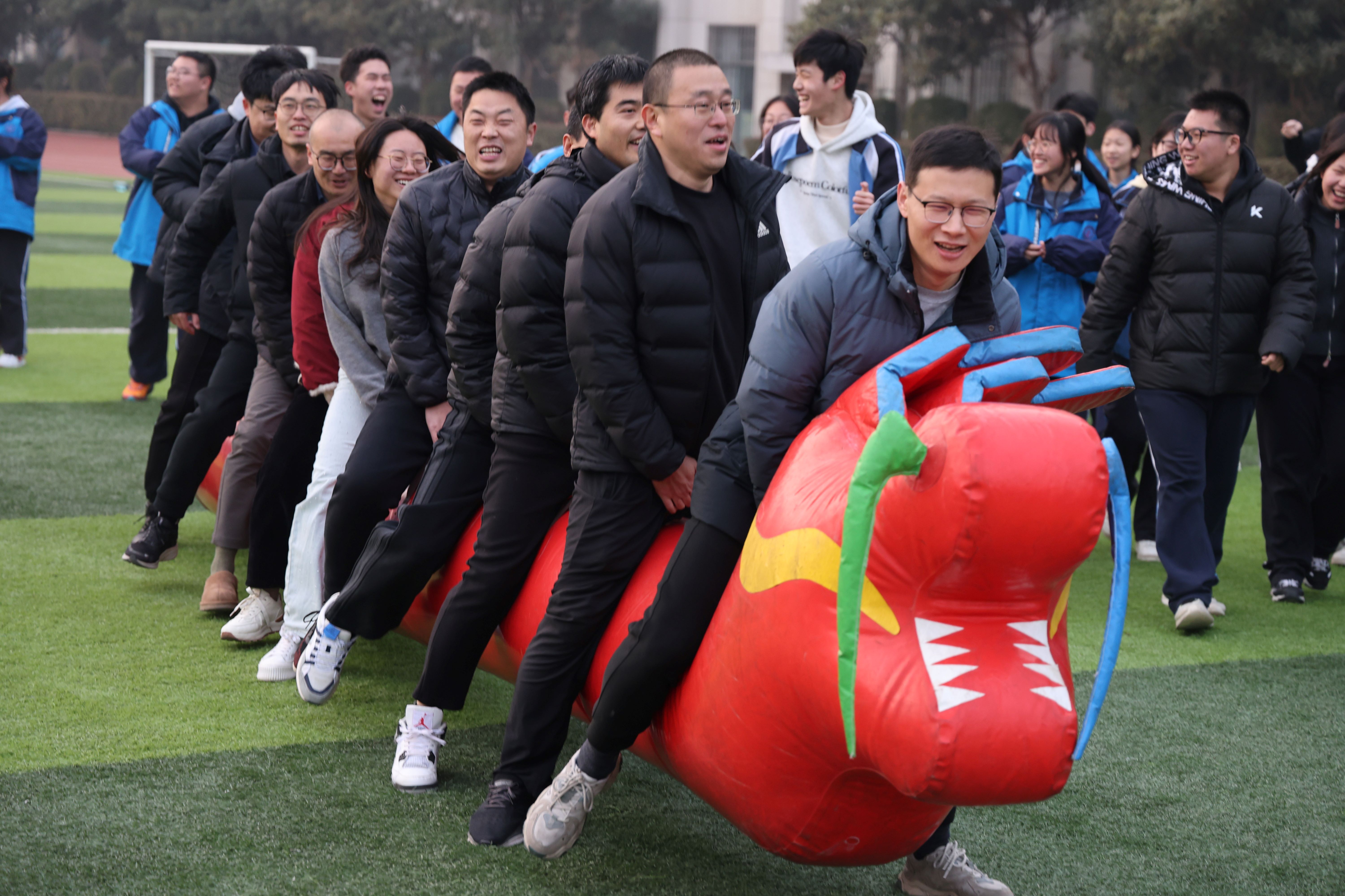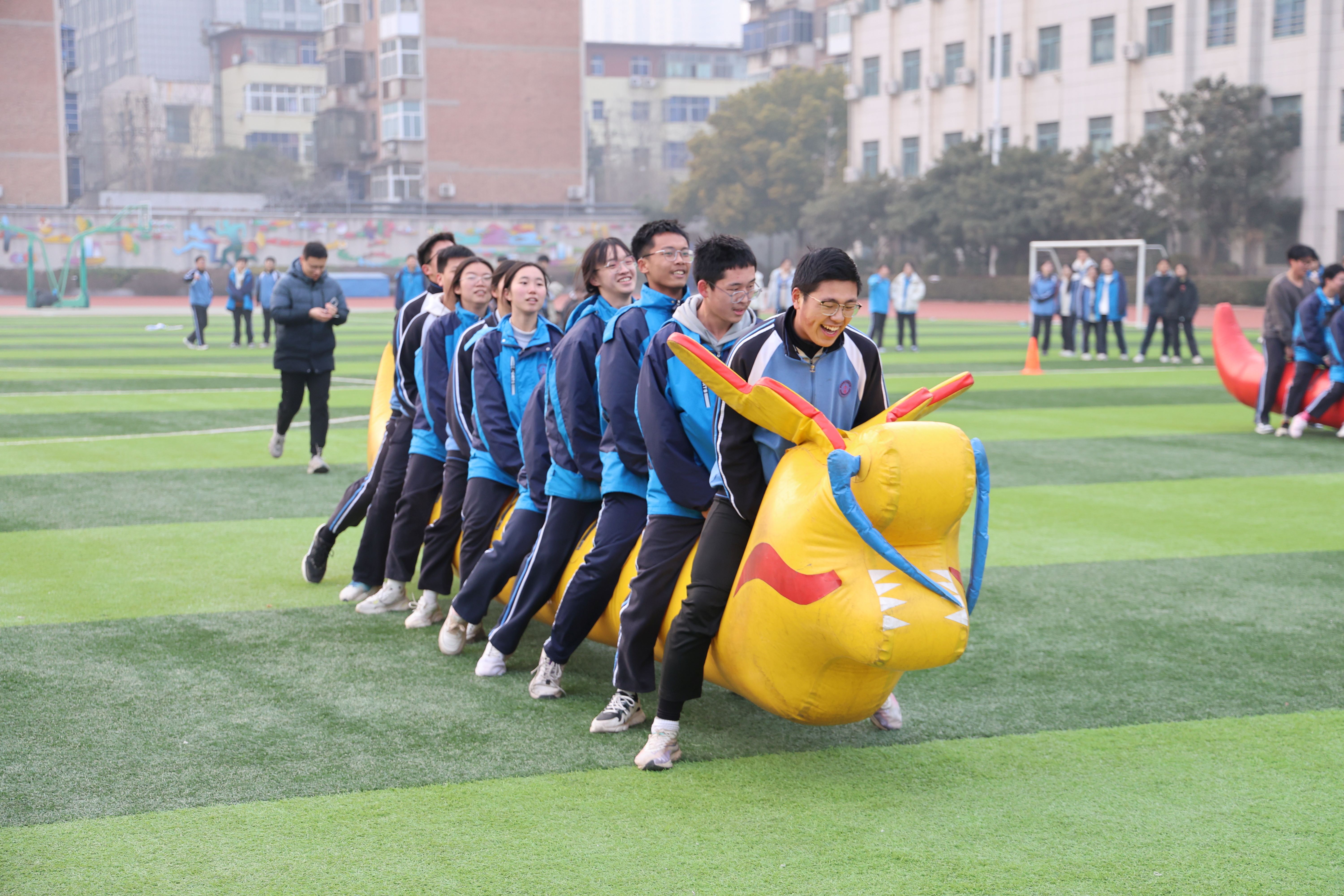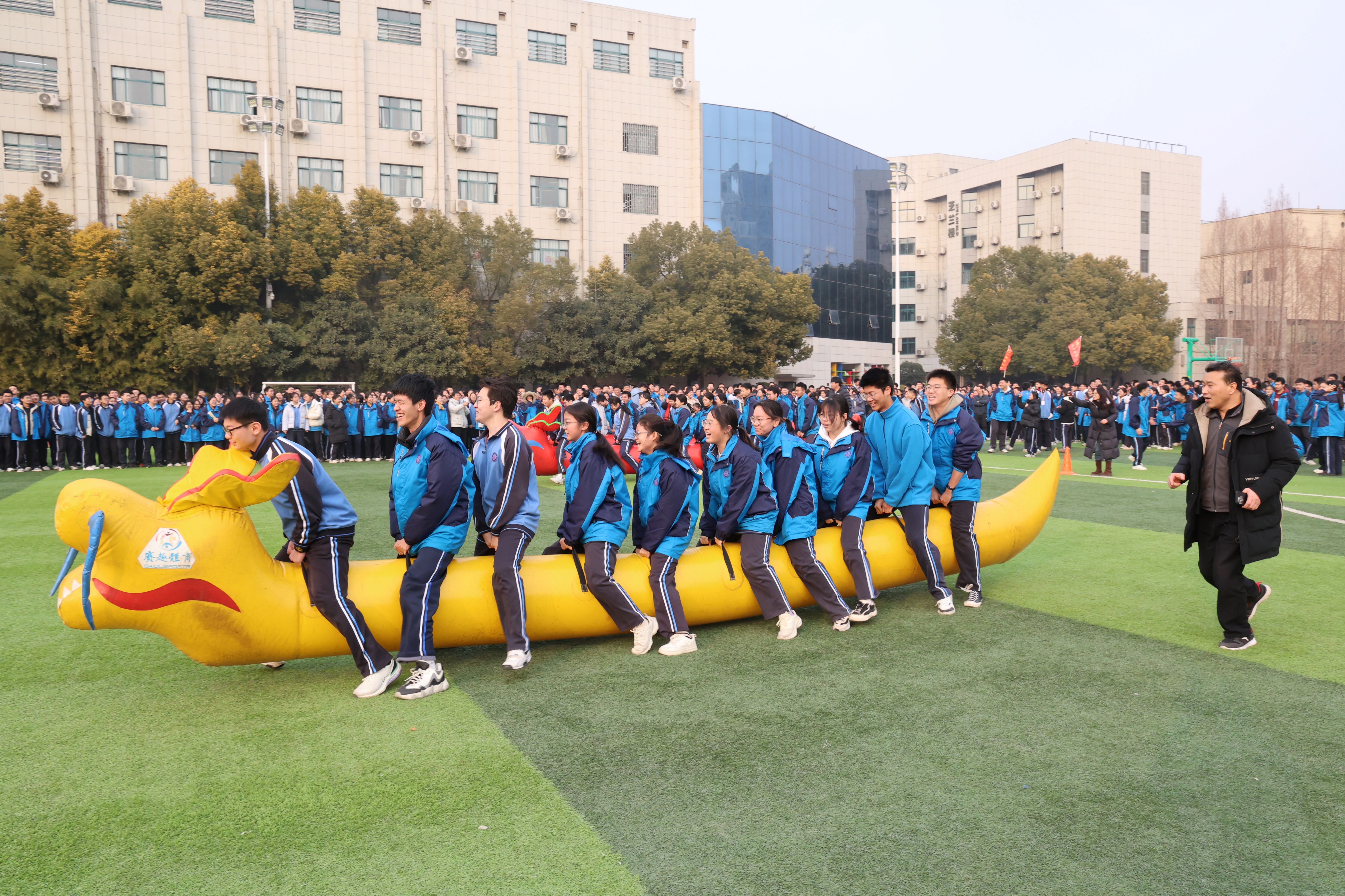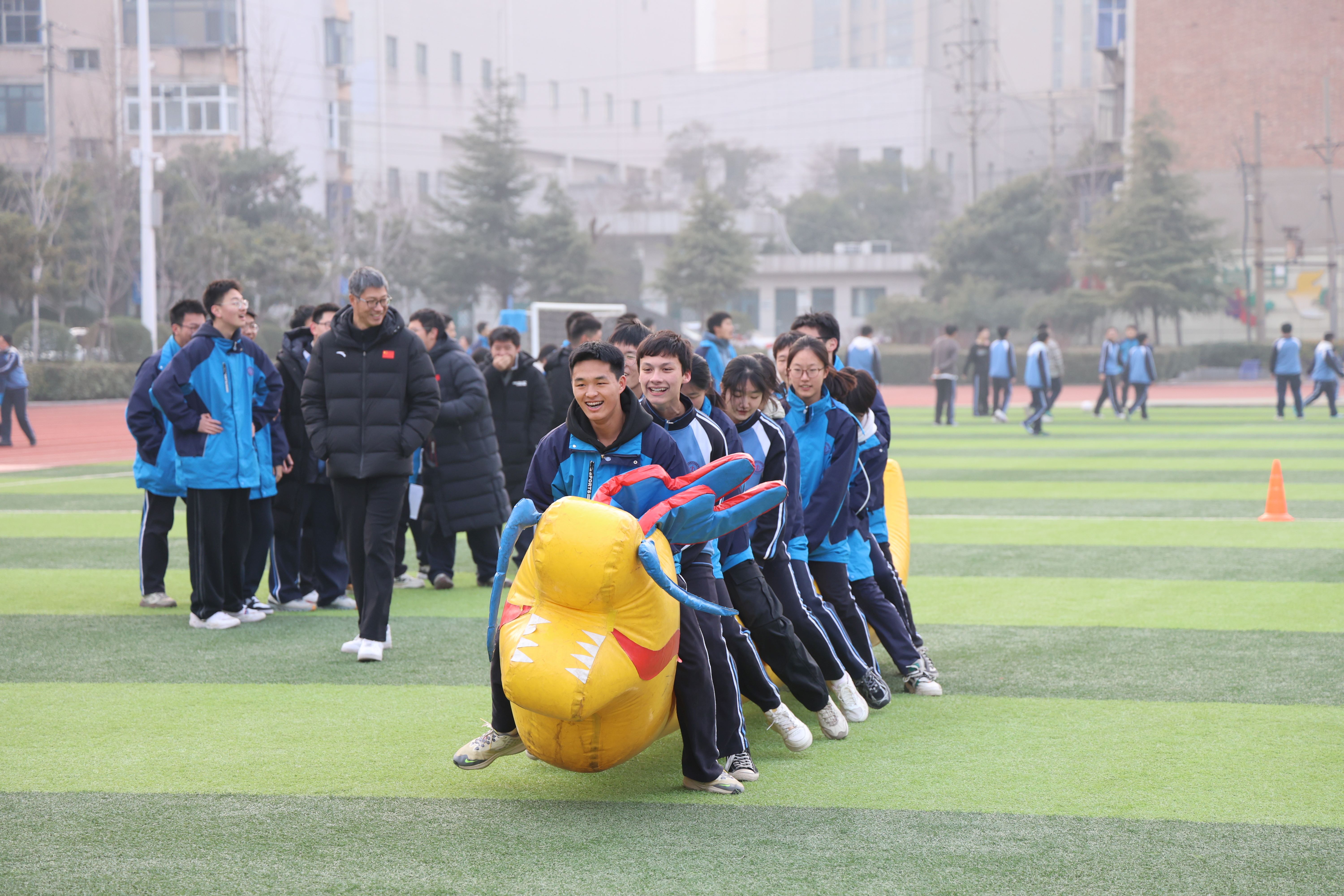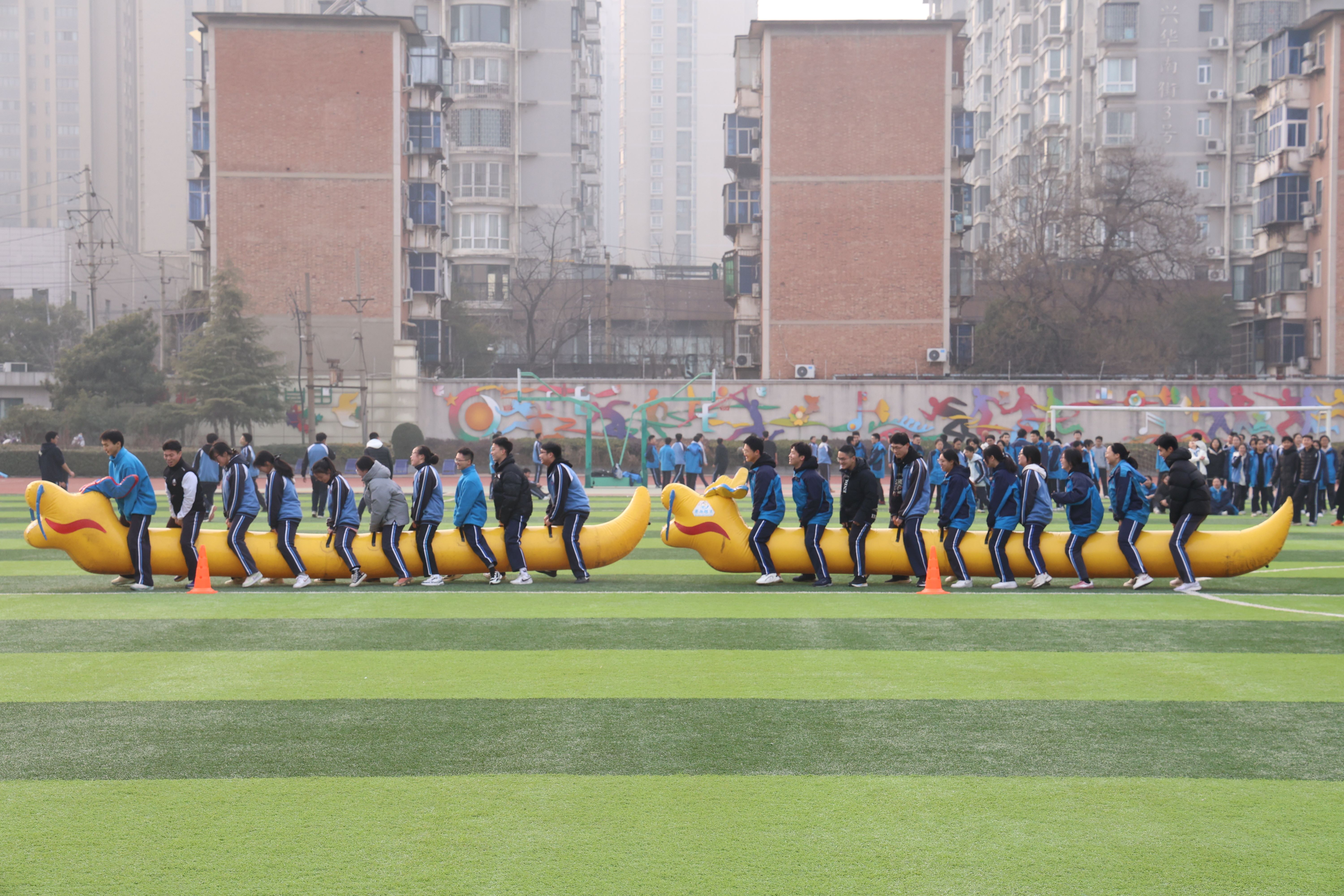 临近寒假,为缓解同学们的期末复习压力,激发运动兴趣,锤炼勇敢顽强、坚韧不拔的意志品质,促进身心健康与社会适应能力全面发展,1月27日下午16:30,郑州市第十九高级中学旱地龙舟趣味比赛在操场展开。高一、高二、高三年级各班踊跃组队,30人一组的参赛队伍中男女各15人,以三次折返的接力竞技,在协作与拼搏中释放青春活力,为期末校园增添了别样光彩。
