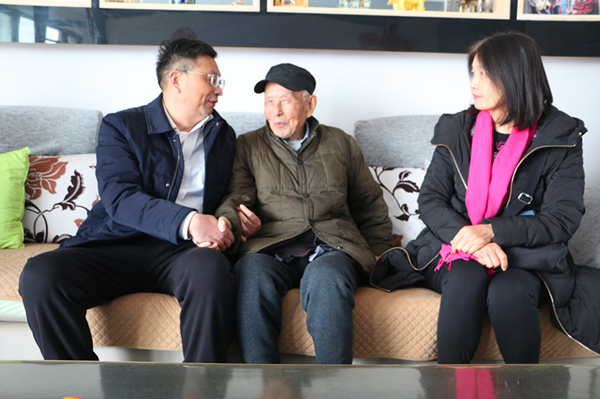 党委书记、校长梁寅峰问候离休干部荆学峰身体状况和家里情况