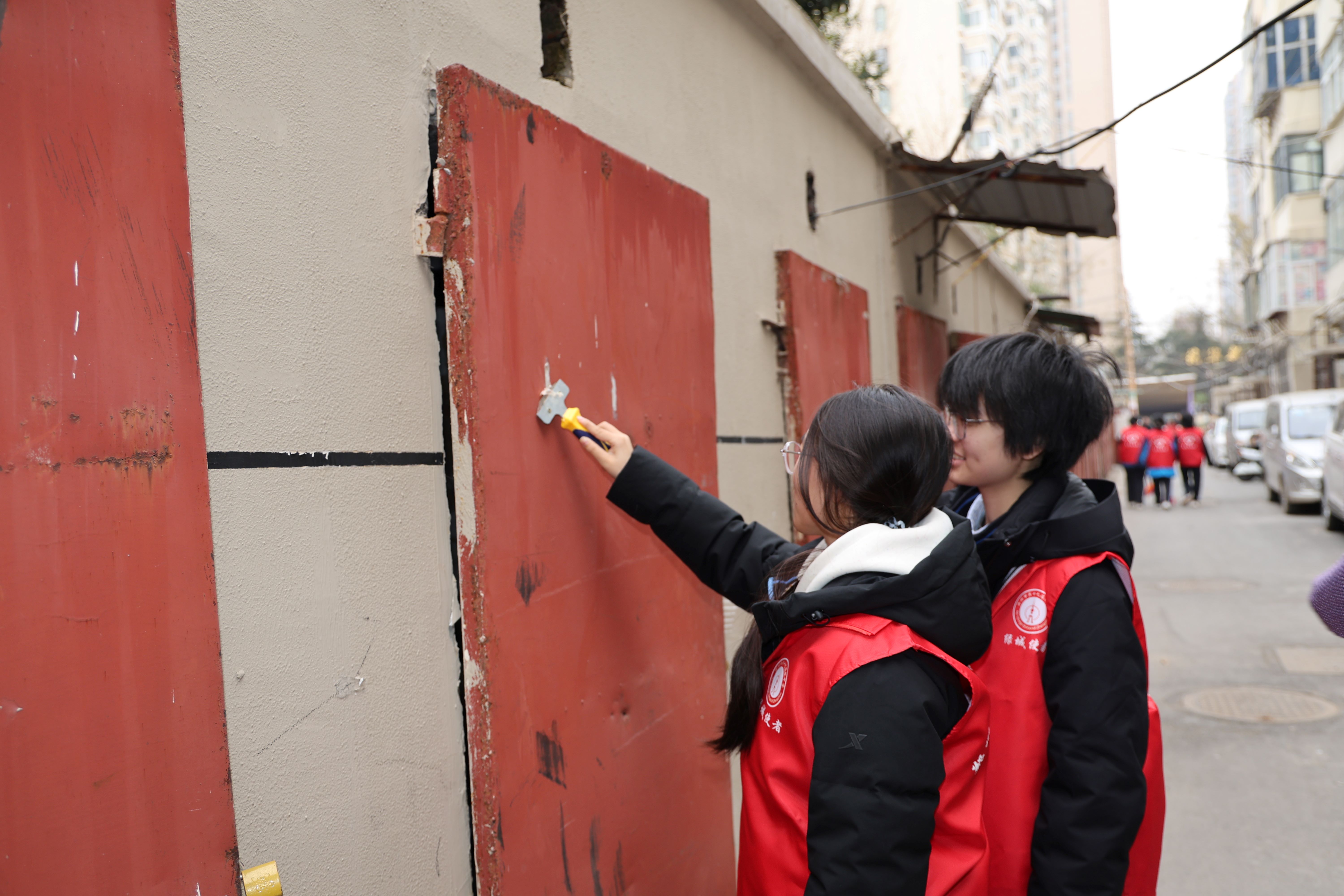 活动开始后,同学们分组行动,在社区工作人员的指引下,深入社区各个角落展开清扫。本次志愿服务主要针对社区道路、楼栋公共区域、各类小广告以及长期积存的卫生死角进行集中清理。大家热情高涨,分工协作:有的小组仔细清扫主干道及小巷路面;有的小组深入居民楼栋,清理楼梯间堆积物;还有的小组利用小铲、喷壶等工具,耐心清除墙面上张贴的各类小广告。面对一些平时不易清理的卫生死角,同学们更发扬不怕脏、不怕累的精神,合力将隐匿的垃圾彻底清理干净。
