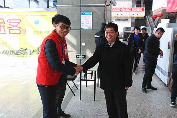 学校党委书记陈绍营来到汽车站慰问志愿者