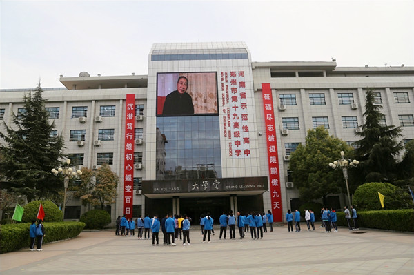 郑州市第十九高级中学党委书记、校长梁寅峰携中层干部 和高三全体教师参加大会。