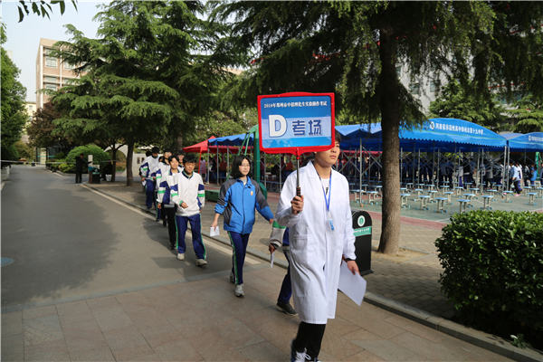 为了保障中招理化生实验考试的顺利进行,给广大考生和家长一个满意的考试环境,郑州十九中成立了实验操作考试考务领导小组,该小组专门负责此次中招理化生实验操作考试的考务工作。前期郑州十九中考点经过多次培训和模拟,周密部署各项考务工作,明确责任,严肃纪律,确保各项工作万无一失。为了能够给万余名考生一个通畅的交通环境,该校联系交警、办事处等有关部门,并安排教师在学校门口附近统筹有序地组织考生进出考点,以热情的态度迎接各个学校的考生。