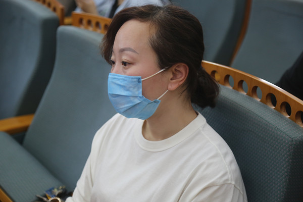 教务处主任罗斐(左二)布置高一高二学生返校和教学安排等工作。