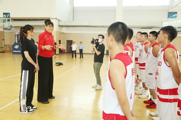 梁寅峰校长向郑海霞介绍了学校的办学特色和学生多样化发展情况,陪同郑海霞一行观看了男篮与女篮训练。郑海霞对该校篮球队员们良好的精神面貌和较高的专业素养给予了充分肯定,并在现场就训练中存在的问题给予耐心指导,郑海霞指导的精彩点评赢得了师生们的阵阵掌声。该校党委书记、校长梁寅峰对队员们也提出了殷切的期望,希望同学们能够不忘初心,在赛场上发扬拼搏无畏精神,在课堂上努力学习文化知识,争取考入理想的大学。