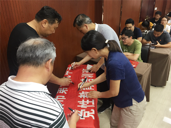 结业典礼上,该校领导为全体学员颁发结业证书,全体学员在“中共郑州市第十九中学委员会”横幅上签名。随后,学员代表朱昌盛畅谈了学习体会,他表示,培训虽然结束了,但是学习和传承井冈山精神永无止境,在今后的工作和生活中,继承和发扬老一辈无产阶级革命家艰苦奋斗、无私奉献的优良传统,深刻领会跨越时代的井冈山精神,不忘初心,砥砺前行,坚定信念,牢记使命,为郑州市第十九中学的建设发展贡献力量,为实现民族的伟大复兴和国家强盛努力奋斗!