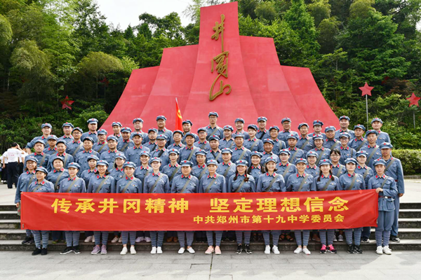2019年6月28日--7月1日,郑州市第十九中学组织党员赴革命圣地井冈山开展党性教育专题培训活动。学校党委副书记孙广兰、纪委书记郭中喜、工会主席董书仁、副校级干部王献民和其他75名党员参加本次培训。