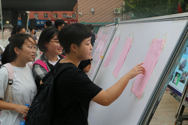 查找自己班级,入座,领取学生手册及军训衣物,一个个新面孔开始在郑州十九中这个大家庭中鲜活起来,这个有爱的校园将会呵护他们不断成长,完善自我,造福社会,实现人生价值。