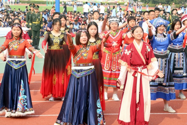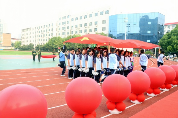 伴随着激昂雄壮的运动员进行曲,英姿飒爽的国旗队,训练有素的校旗队,绚丽多彩的彩旗方队隆重入场。随后,步伐稳健的裁判员队伍和整齐划一的班级方阵依次有序入场。青春总是散发着活力的光芒,各年级各班级的开幕式表演设计精巧,各具特色,精彩纷呈,全场师生掌声不绝、欢呼不断,共享一场盛大的视觉听觉盛宴。爱国与爱校的结合,古典传统与现代流行的融合,校旗与班旗,舞狮与武术,历史情景剧、扇子、中国鼓等多种元素,大放其彩,师生们目不暇接,乐在其中。