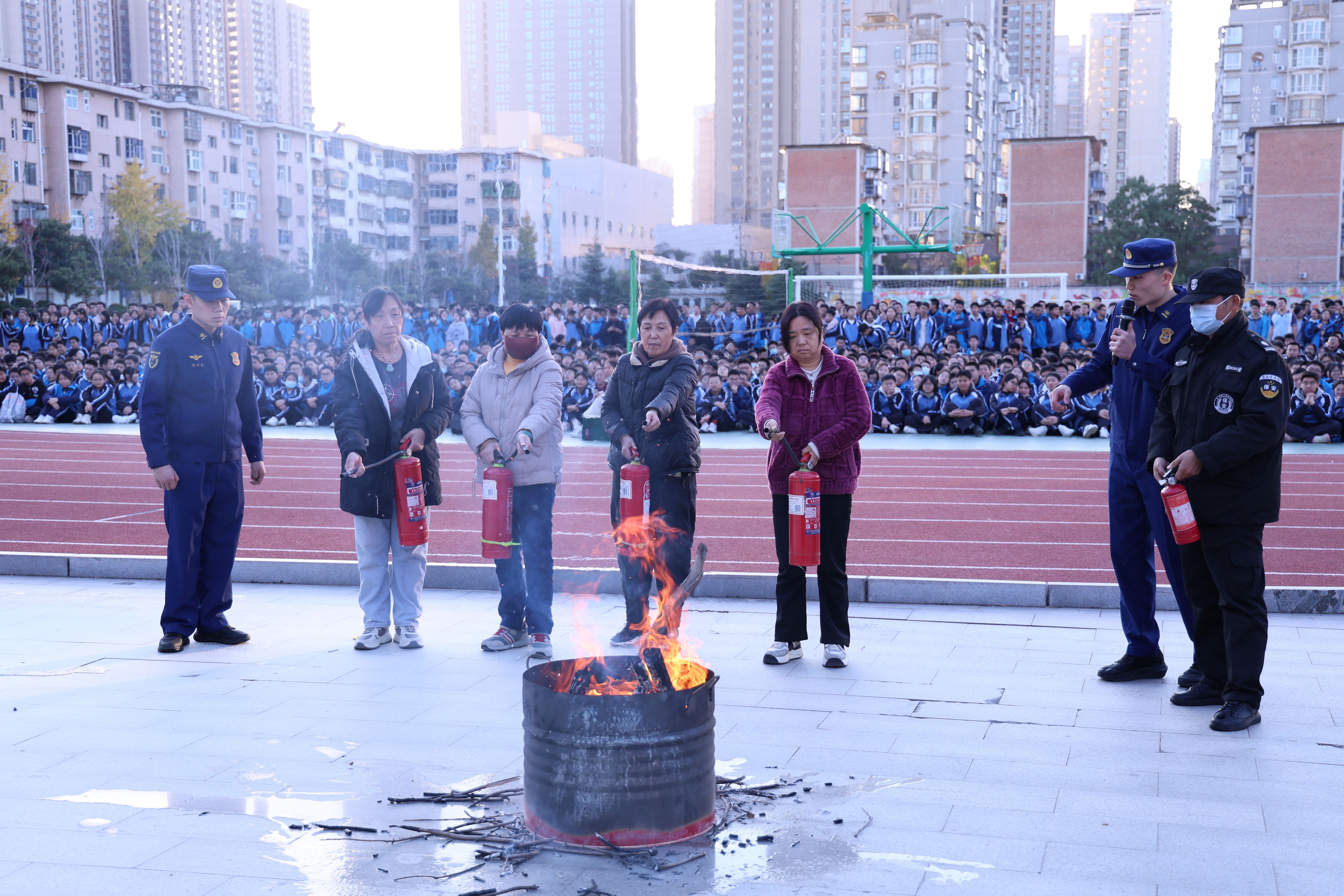 安全是校园工作的生命线,应急演练是守护生命的必修课。为进一步强化师生安全防范意识,提升突发情况下的应急疏散与自救互救能力,筑牢校园安全 “防火墙”,郑州市第十九高级中学于 2025 年 11 月 19 日下午 16:00 至 16:30,在大学堂及操场区域组织开展了一场集疏散演练、知识讲解、实操体验于一体的综合性消防演练活动。学校领导高度重视,各部门协同联动,消防队专业指导,全体师生积极参与,整场活动紧张有序、内容充实,达到了预期效果。