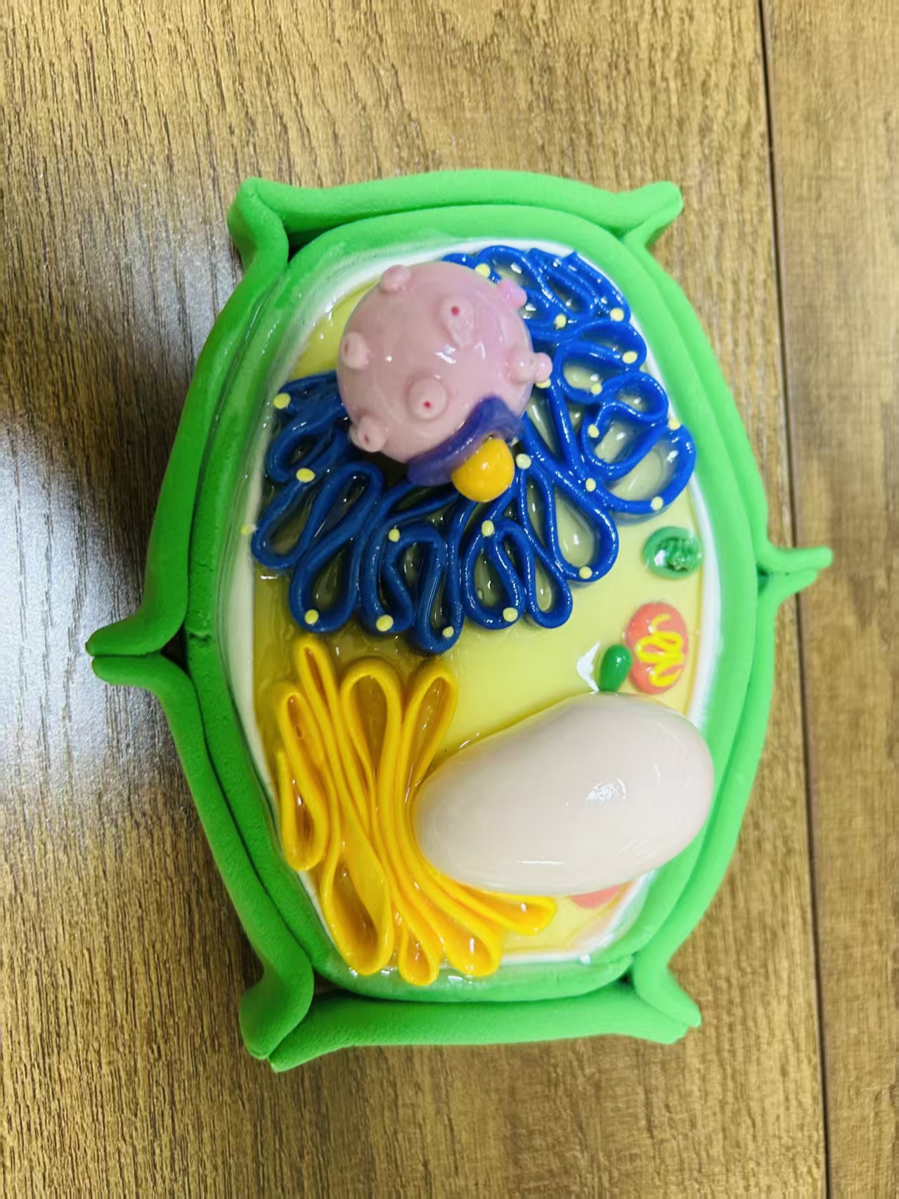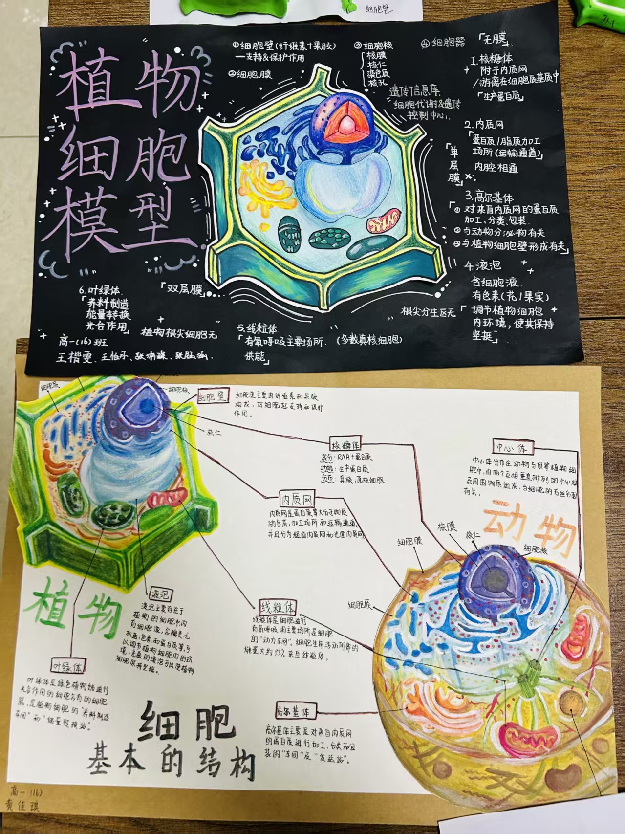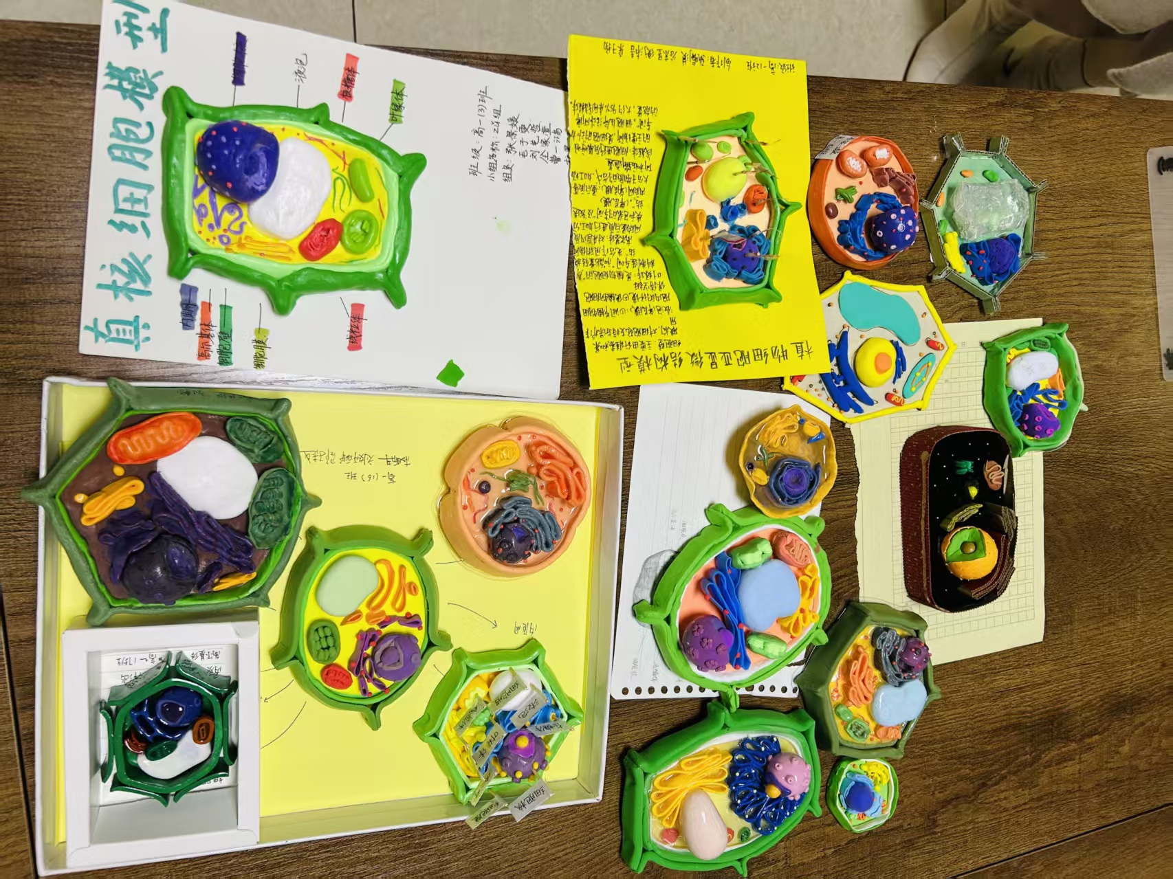翟中和院士曾言:“哪怕一个最简单的细胞,也比迄今为止设计出的任何智能电脑更精巧。”细胞作为生物体结构和功能的基本单位,是解锁生命奥秘的核心密钥。本次活动紧扣细胞结构核心知识点,高一年级生物组在筹备阶段便制定精细化标准:作品需确保结构完整、比例精准,鼓励标注关键结构名称与功能,直观呈现知识掌握的扎实度;同时倡导巧用环保材料、迸发创意巧思,让科学实践与绿色理念深度融合,让创作过程兼具知识性与趣味性。