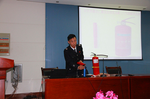 胡青龙老师结合近年来发生的多例典型火灾案例视频,深入浅出的为大家讲解消防安全常识,从家庭常见火灾隐患排查到高层建筑逃生要领,从消防器械演示到现代化消防科技介绍,一幕幕惨烈的画面,一个个详实的案例,触目惊心,发人深省。随后,胡老师还演示了灭火器的正确使用方法,展示了火灾发生后的逃生技巧等。详细的讲解,认真的展示强化了大家的安全隐患排查能力和自救互救能力。