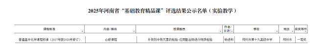 近日,河南省教育厅发布了《河南省教育厅关于2025年“基础教育精品课”省级评选结果的公示》。郑州市第十九高级中学余晓瑜、杨进利两位老师凭借扎实的教学功底与深厚的专业素养,在全省众多优秀课例中脱颖而出,双双斩获河南省一等奖。
