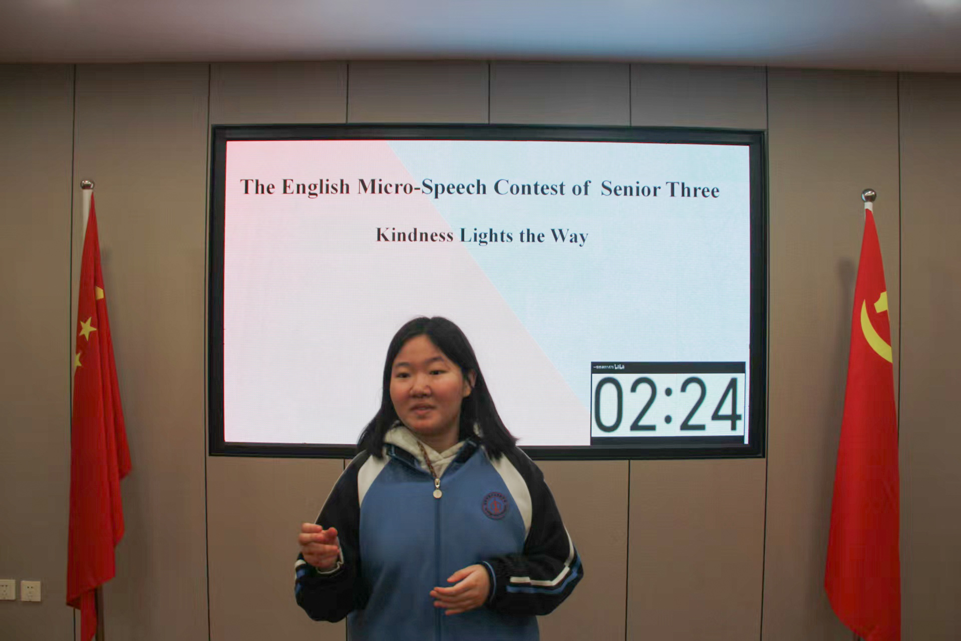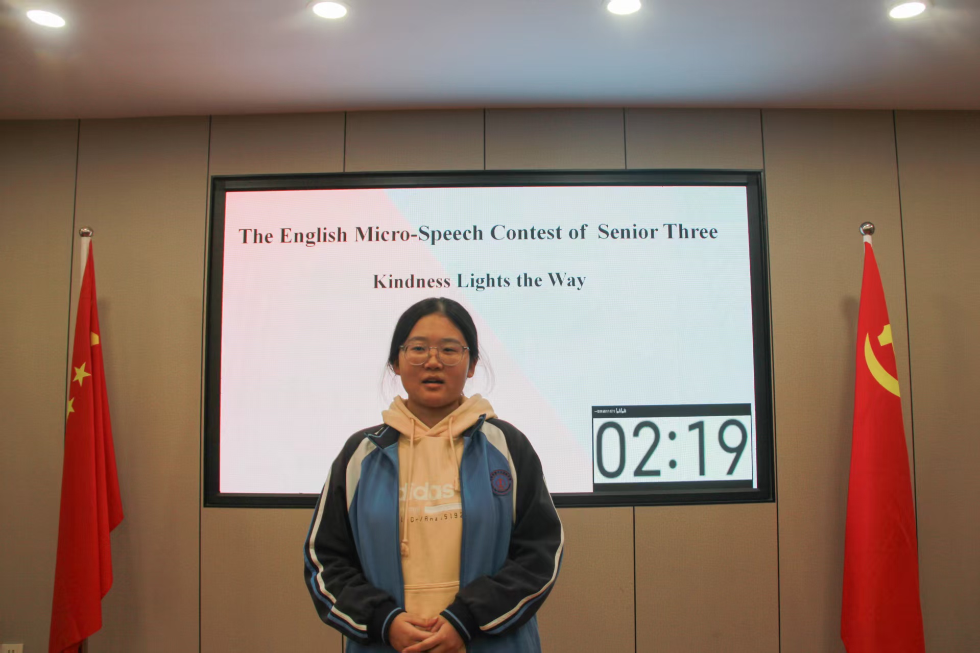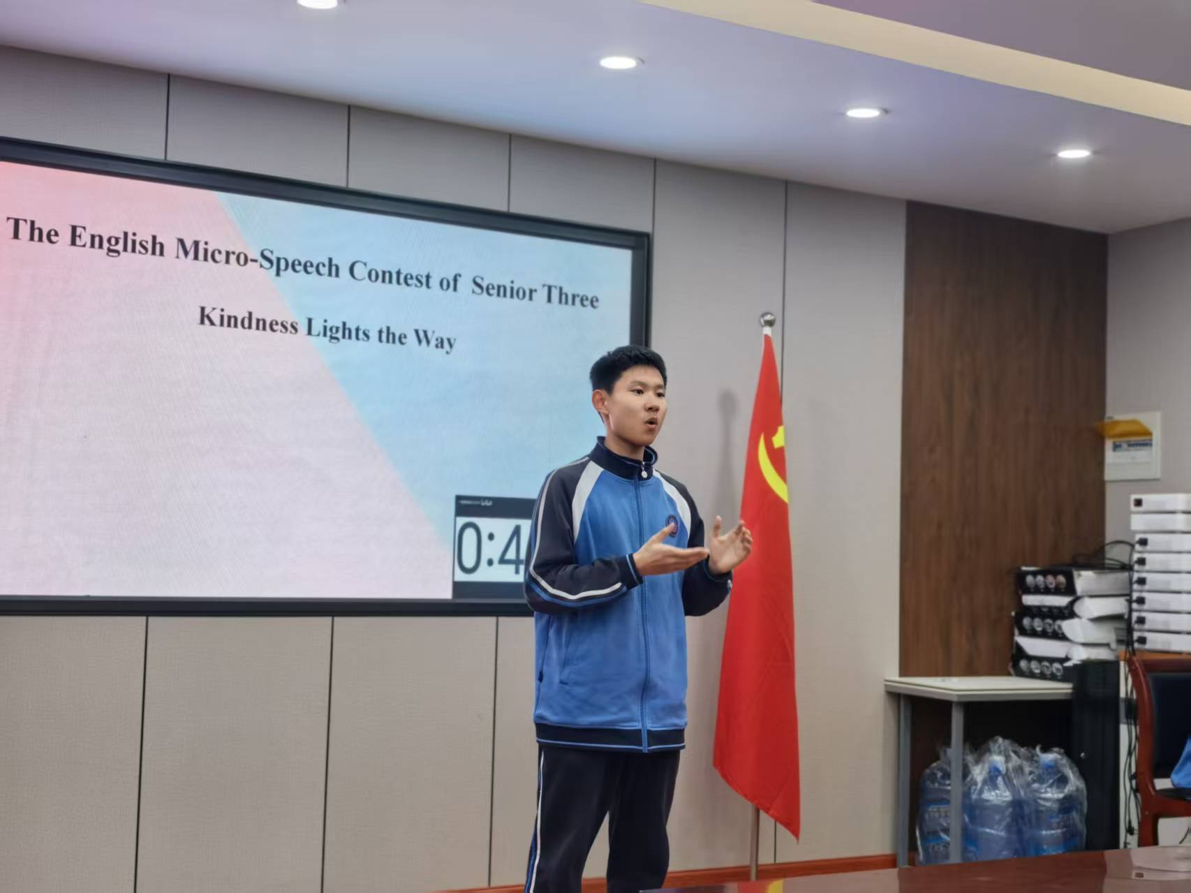 2025年12月5日下午,暖阳洒满校园,高三年级英语微演讲比赛第三期如期而至。继前两期“搏击风暴”与“历经挑战”的精彩呈现后,本期以“Kindness Lights the Way(善良照亮征程)”为主题,继续紧扣高考读后续写的核心人文内涵,引导学生在表达中体悟善意、传递温暖,在言语中绽放思想与情怀的光辉,为紧张的高三备考生活注入了暖心力量。这里既是学子们锤炼语言能力、深化主题认知的实战赛场,更是展现青春温情、传递人间善意的精神家园。
