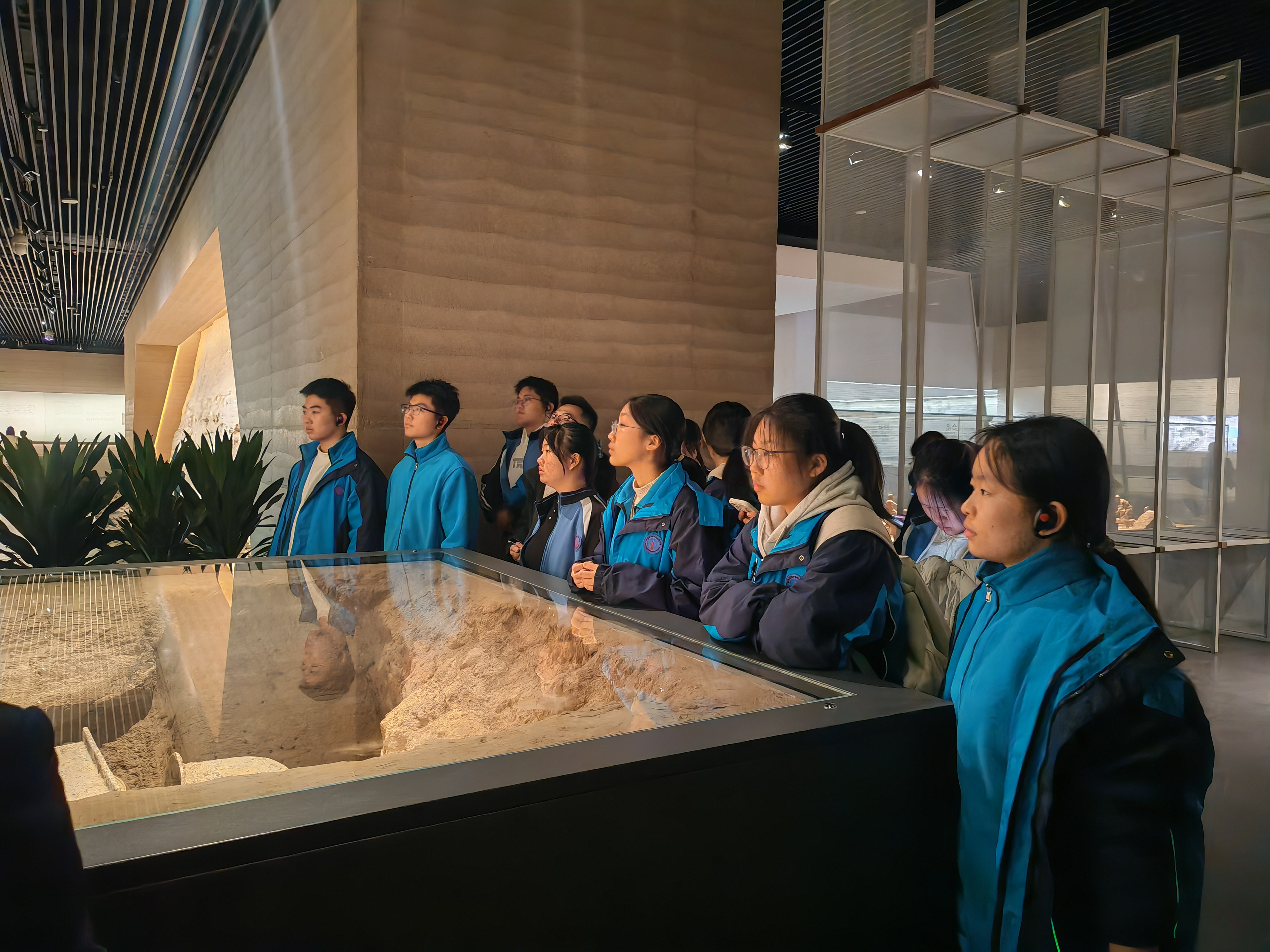 为深化思想政治教育与历史文化传承的融合,引导学生从考古实证中感悟中华文明的源远流长,郑州市第十九高级中学风云时政社团在高一政治组老师的带领下,赴郑州市商代都城遗址博物馆开展“探寻商都密码・感悟文化自信” 主题研学活动,社团成员沉浸式领略了3600年前商代都城的辉煌文明。